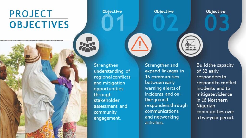 The effects of climate change on the Lake Chad basin are key triggers of conflict as herders migrate to other parts of the region to find fodder and water for their cattle. The migration patterns of nomadic communities have begun to signal security concerns beyond the immediately impacted regions. In late 2017, state governments within the western and southern parts of the country began to set up community policing strategies to address growing security challenges around their states, including those relating to the (perceived) threats associated with the movement of cattle herders. Complicating this situation, the presence of large groups of cattle has incentivized “conflict entrepreneurship” as armed groups of young men across north central, north west and southern parts of the country engage in cattle rustling. The project builds upon and integrates the strengths of state and civil society responses to date, while also contributing vital resources and expertise. Local Non-Governmental Organizations (NGO) and academic partners are working to contribute deep knowledge of the region, analysis of the factors underlying ongoing conflicts, and the existing on-the-ground networks that can be mobilized and trained to undertake successful violence prevention and mitigation activities. Given the inadequacy of existing early warning structures and the slow response by state security actors, mobilizing individual and collective civilian engagement is the best strategy for turning the tide on violent conflict in Northern Nigeria.